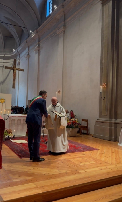 Il sindaco metropolitano Stefano Lo Russo ha consegnato un ricordo al priore dell’Abbazia che ha definito “un faro di spiritualità nel cuore delle Alpi, custode instancabile della regola ora et labora” rendendo omaggio “alla missione che la comunità monastica ha svolto e svolge con umiltà e costanza, preservando la tradizione millenaria che qui si respira”.